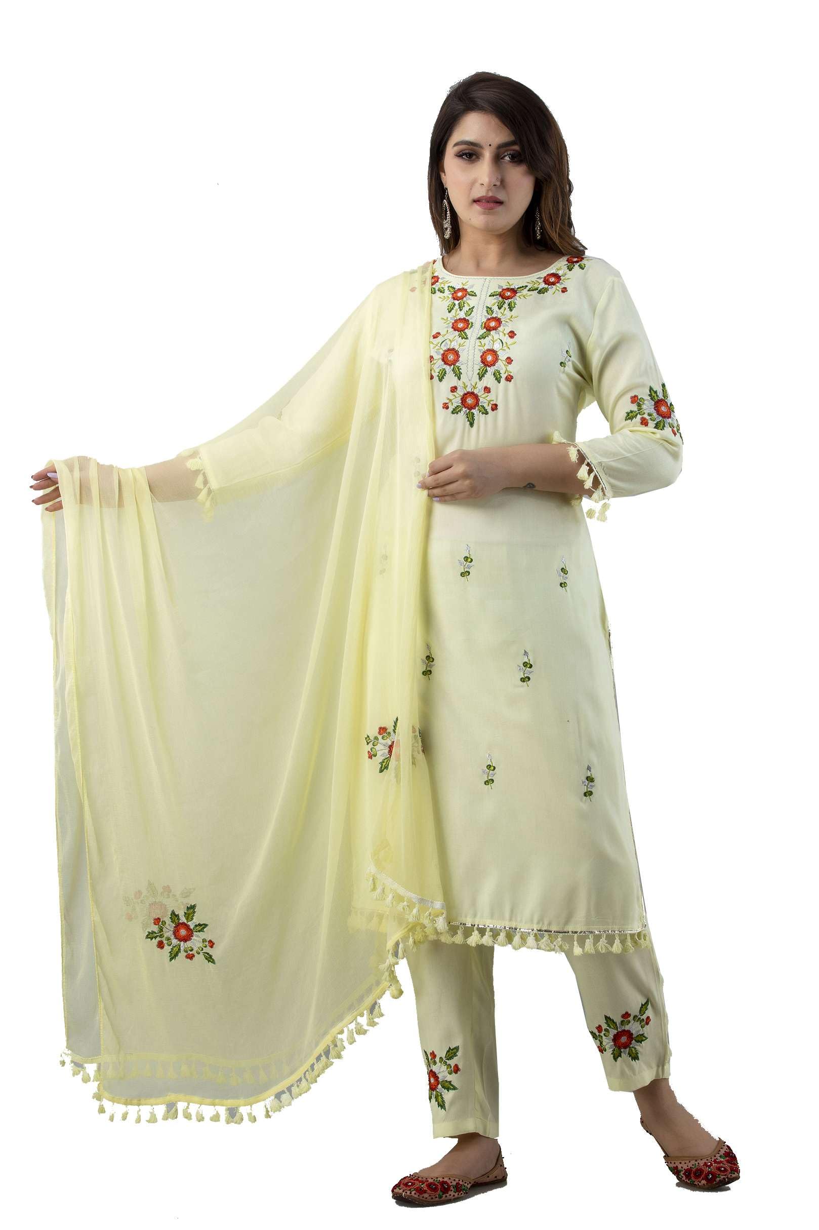 Be the first to review “Beige Rayon Straight Embroidered Kurta Set”