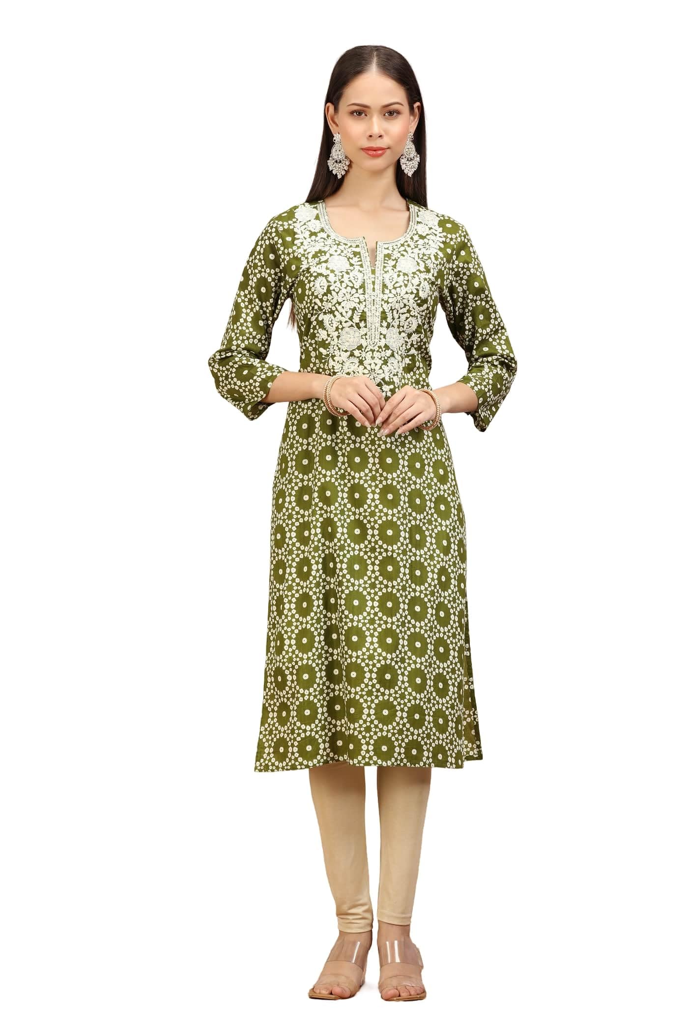 Mehandi Green Jaipuri Cotton Straight Printed Kurta