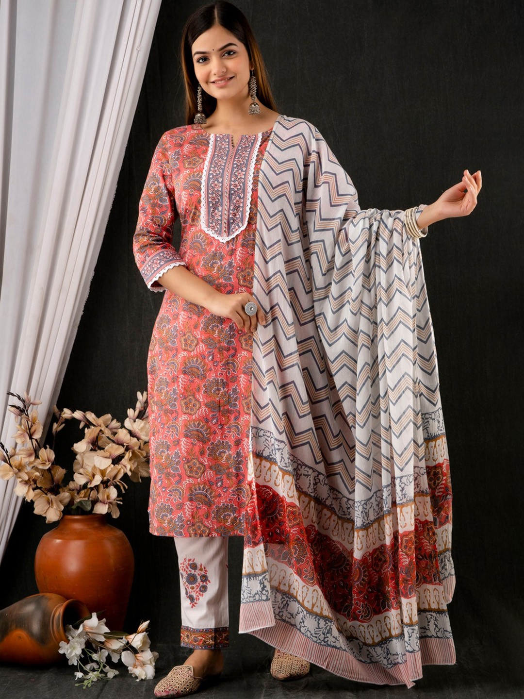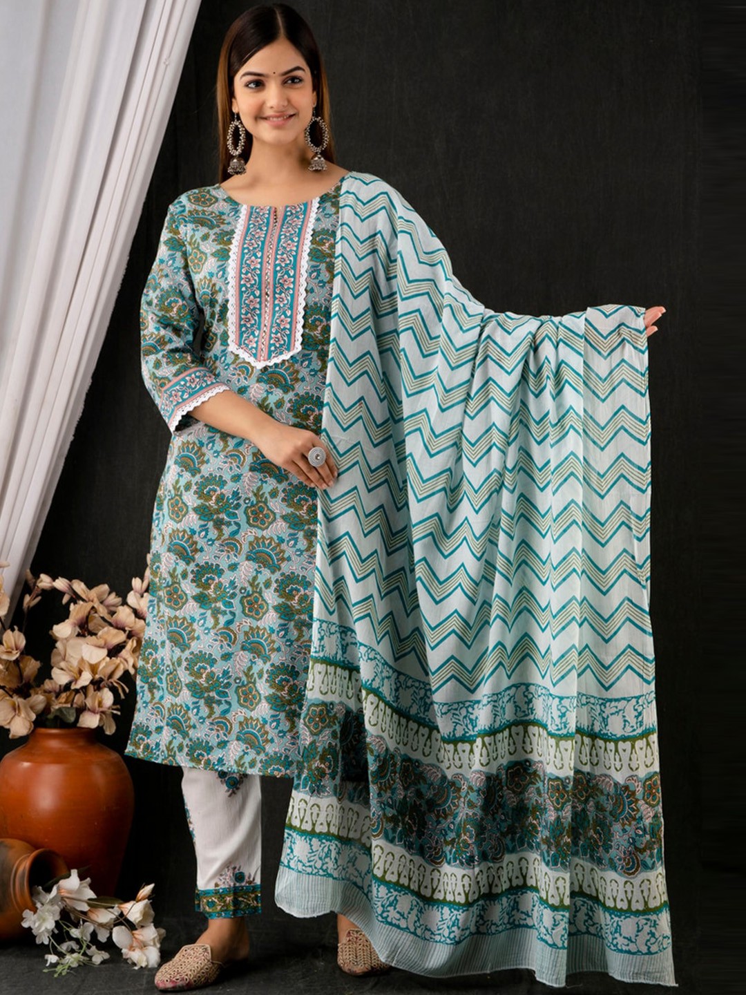 Women’s Cotton Printed Kurta Pant and Dupatta Set