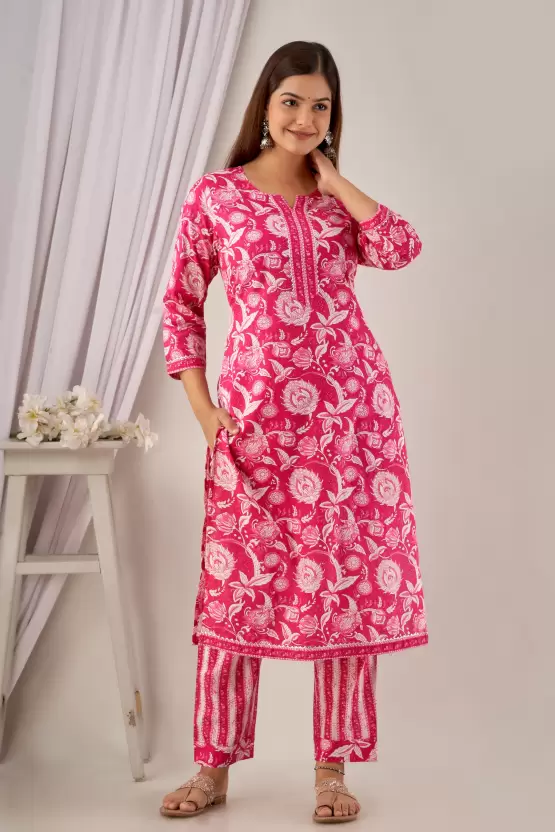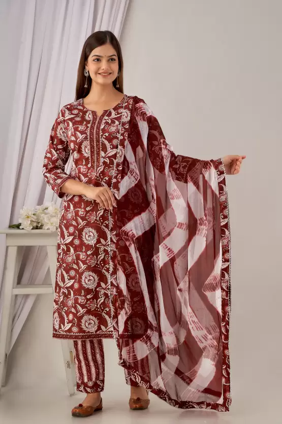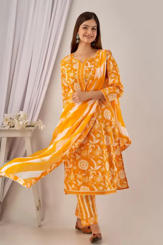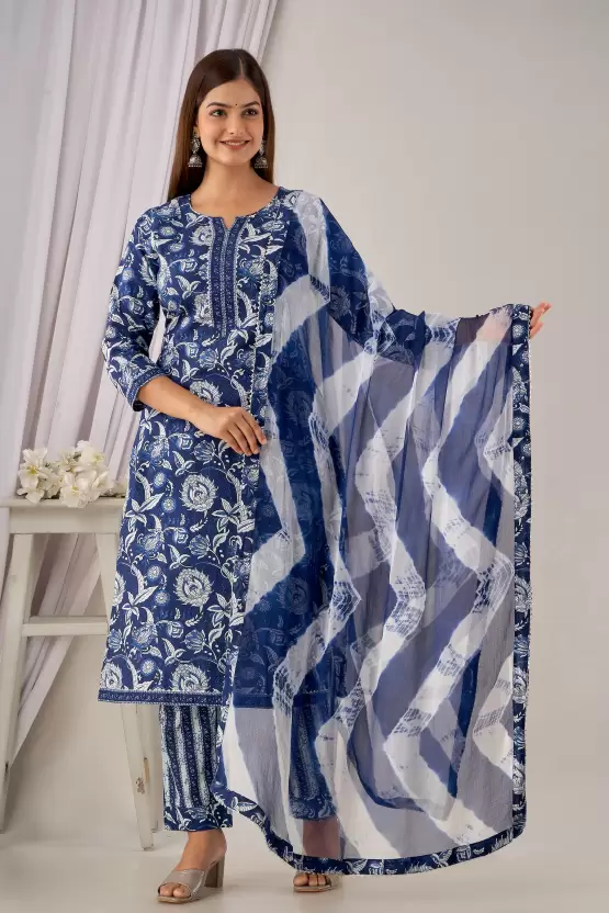Women’s Cotton Printed Kurta Pant and Dupatta Set